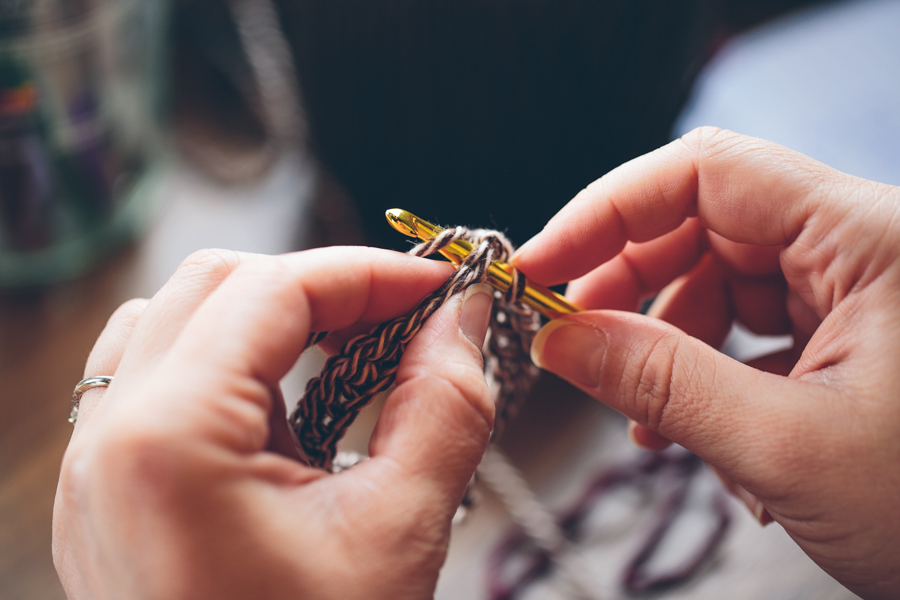 Remember: if this is your first crochet experience, it’s not about crocheting using proper techniques – it’s about learning how to use the hook to make the yarn do what you want. It’s an extension of your body. The proper methods and techniques will come more naturally as you practice. Set the hook and yarn in your lap if you need two hands to complete one of the steps in a tutorial. Don’t give up. Practice. Feel how the hook rolls in your hand and between your fingers. Notice how the yarn pulls through each loop as you practice hooking it. You will learn. You will create!