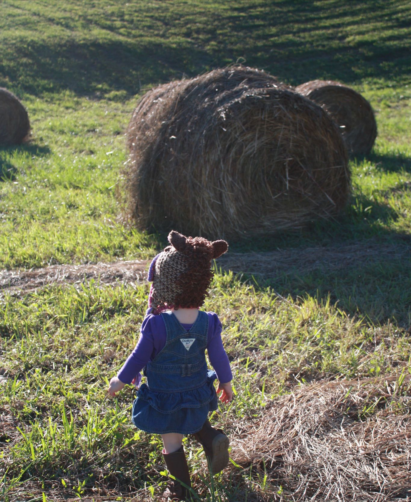 Where would I be without my customers? I made this hat for the sweet girl pictured in all the photos. Her mom used the hat for a costume. But first, her daughter ran around the farm while her mom took pictures. She then sent me the photos and gave me permission to use them. I love seeing my animal hat on the kiddo I made it for. It’s an incredible blessing.