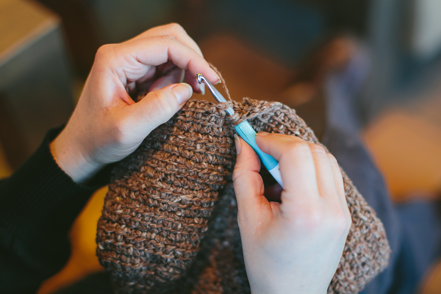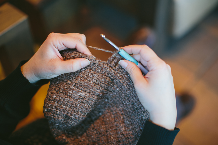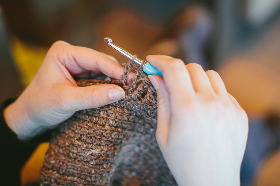 As you can see after completing a few stitches, while there are many steps to this one stitch each row is three times the height of a single crochet. There is also a lot of space between the stitches making a fabric that isn’t as dense as the single crochet. This makes for a quick mesh-look to any project!