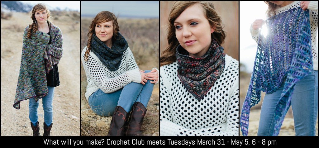 Your ticket includes 5 classes (held over 6 weeks to accommodate 1 make-up class). Crochet club meets once a week on Tuesdays beginning March 31 and ending May 5 from 6 – 8 pm.