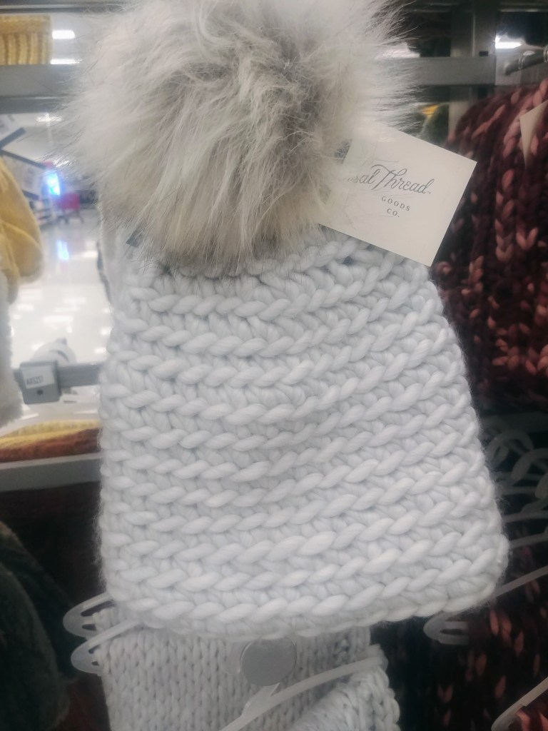 Imagine my dismay when I walked into Target the other day and found my Bulky Beanie hat complete with a faux fur pom on top selling for $14.99.