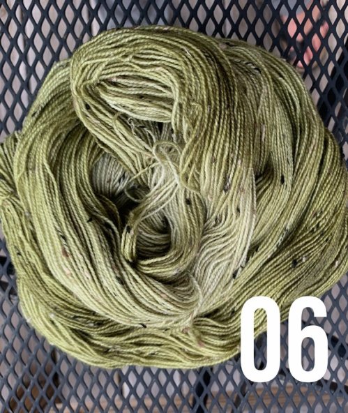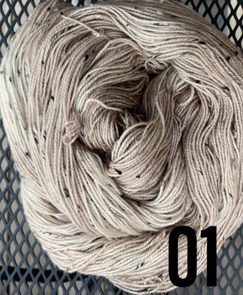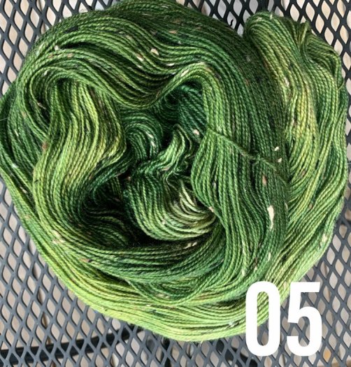 Yarn: Running on Yarn Tweed Collection fingering weight yarn: 438 yd/ 100g per skein 85% Bluefaced Leicester, 15% Donegal nep (Polymide). Choose one skein per shrug.
