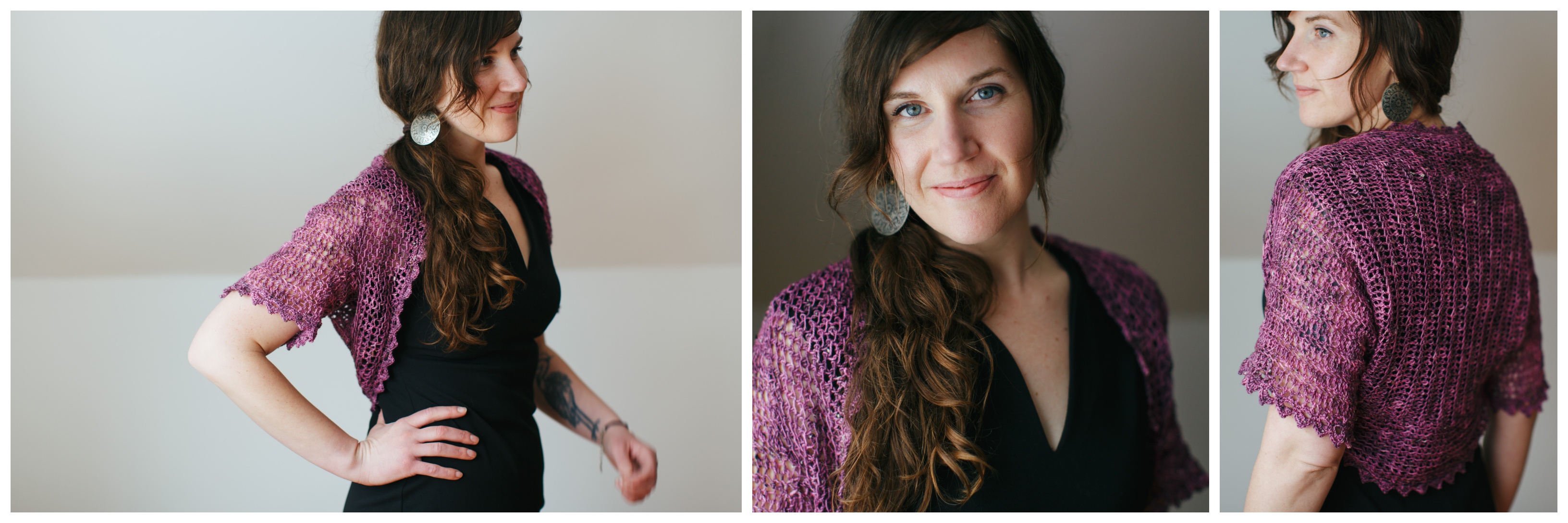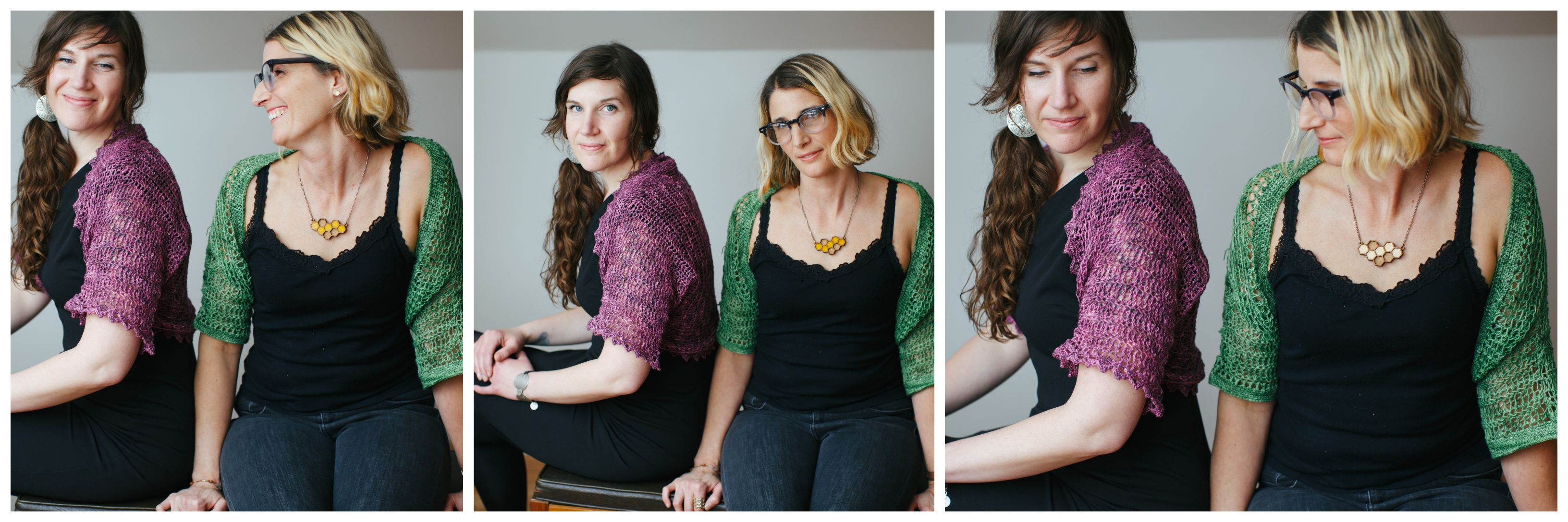 Shrugs are one of those delightful confections whose sum is greater than its parts. When you take a rectangle and add sleeves, you suddenly have an accessory that adds chic finish to your little black dress or takes your daytime top into evening-wear territory. Now you have two styles to choose from. One for you and one for your best friend! And the best part? Each shrug only uses one skein of fingering weight yarn. FINALLY a crochet garment that doesn’t break the bank!