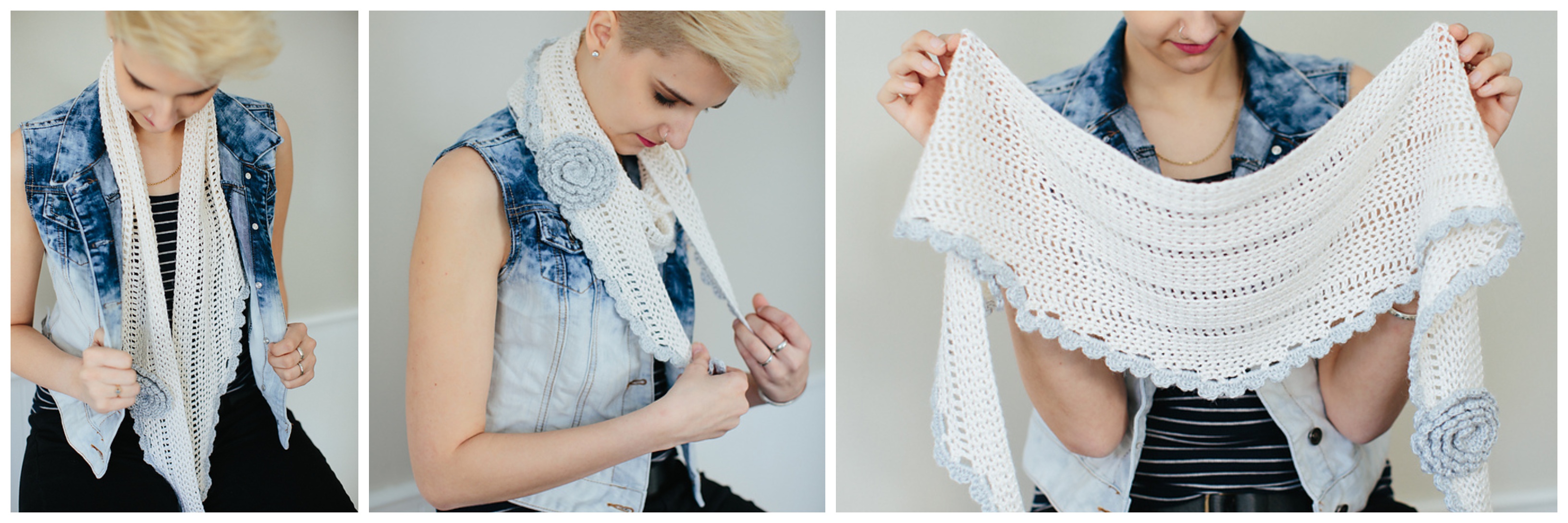 Hook: (I-9) 5.5 mm (Scarf body); 4.0 mm (flower)