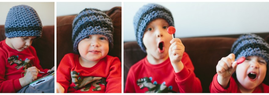 Similar, but not exactly alike, this beanie with its variations is the perfect addition to your boys’ winter hat stash!