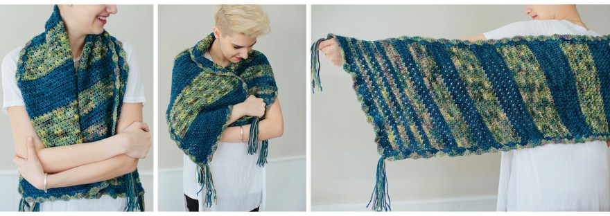 Wrap yourself up in comfort. This shawl works up beautifully with a lovely pattern crocheted on the bias and is sure to add cozy warmth to the chilly winter months.