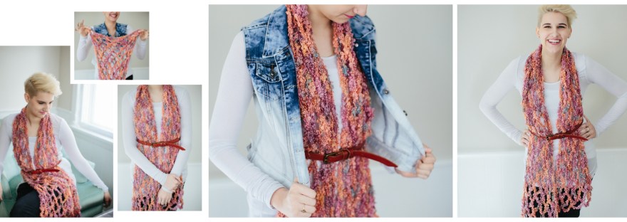 This scarf is great for those who have mastered basic stitches and are ready to learn a few advanced stitches.