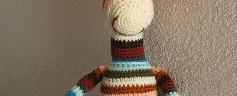 Here he is - my first ever crocheted stuffed animal. I loved creating this little guy... well, he's not very little at 18" sitting. I especially love commissioned work that allows for free flowing creativity. My only guidelines made this project delightful: stripy and multi-colored in boy colors. Since I am used to making crocheted… Continue reading Stuffed Giraffe
